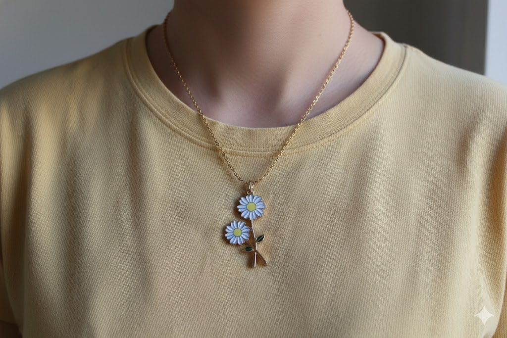 I placed the quaint daisy charm on an 18" gold plated chain.